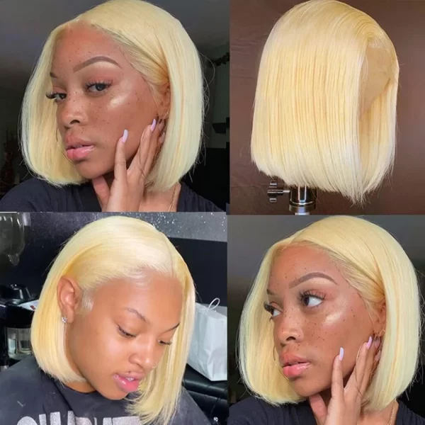 613 Honey Blonde Human Hair Straight Short Bob Wig